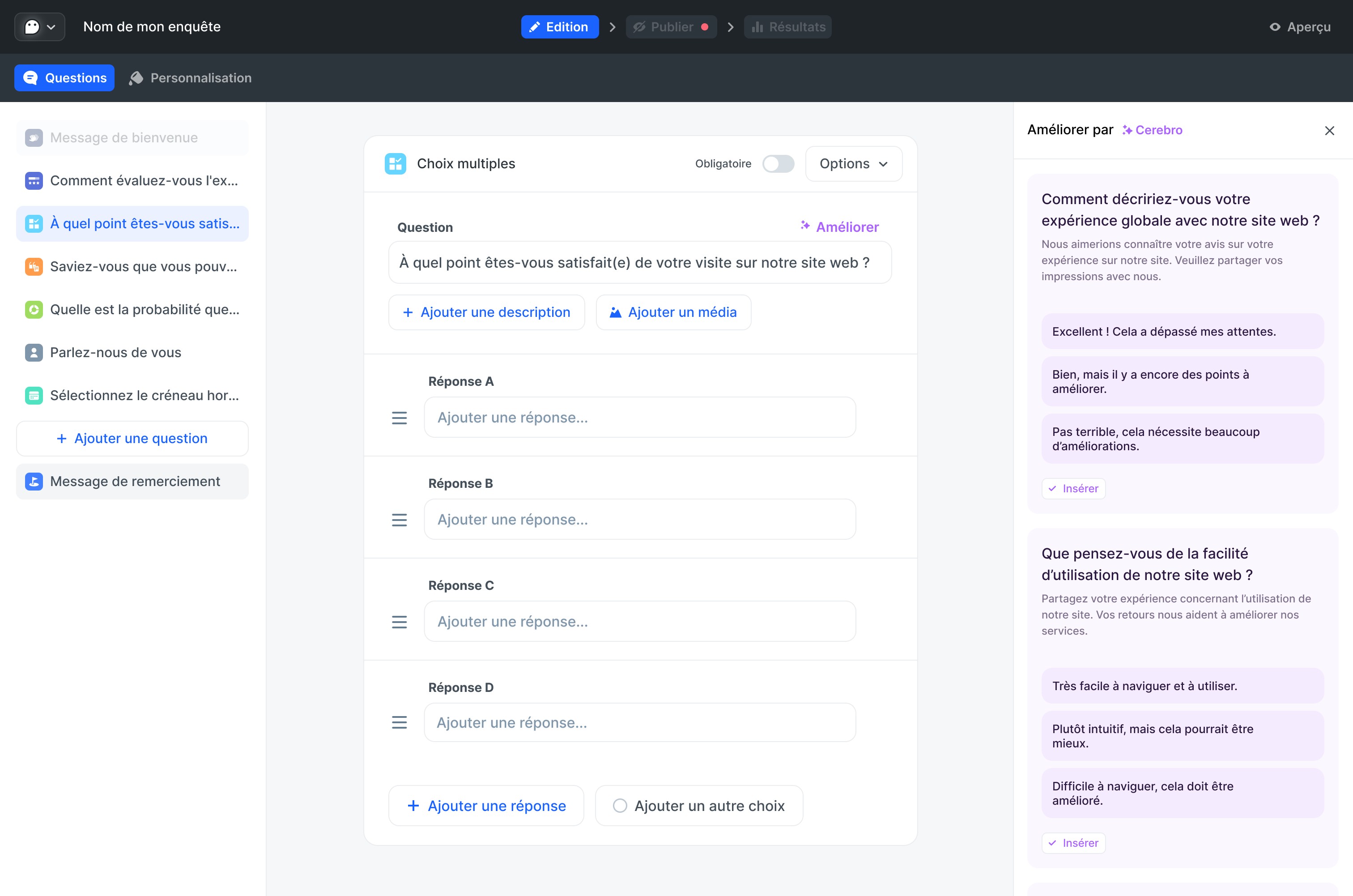 Il simplifie l'élaboration des questions et garantit que vos enquêtes sont conçues pour être claires et percutantes.
